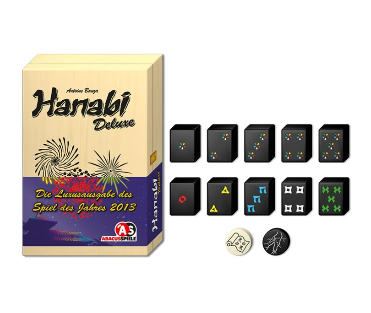 Hanabi—named for the Japanese word for “fireworks” and consisting of the ideograms “Flower” and “Fire”—is a cooperative game in which players try to create the perfect fireworks show by placing the cards on the table in the right order.