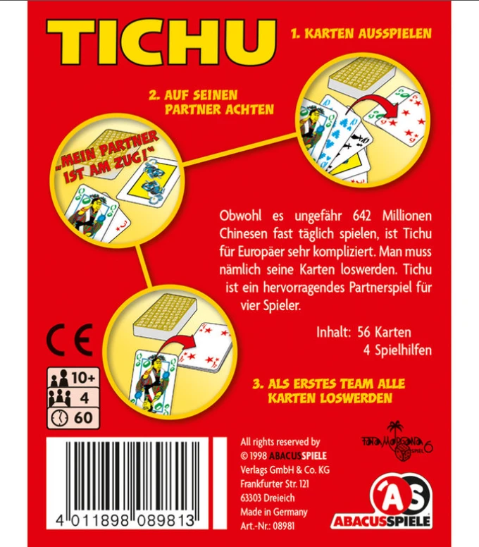 Tichu is the further development of a traditional card game that the Swiss author Urs Hostettler got to know on one of his trips. The game quickly began its triumphal march through all German-speaking regions of Europe. In the meantime it has found worldwide distribution. In this partner game, players try to be the first to get rid of their cards. That takes some empathy.