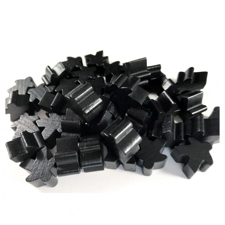 50 black wooden meeples (16mm x 16mm x 10mm). Replace meeples for your favorite games or use them to create your own game!