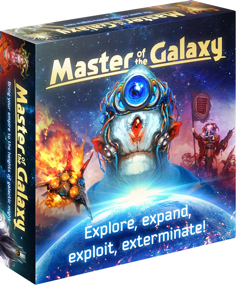 We are proud to announce Master of the Galaxy, a fast playing 4Х board game – eXplore, eXpand, eXploit, eXterminate – using a unique and innovative blend of bag-building, card-drafting and tech-tree development mechanisms.