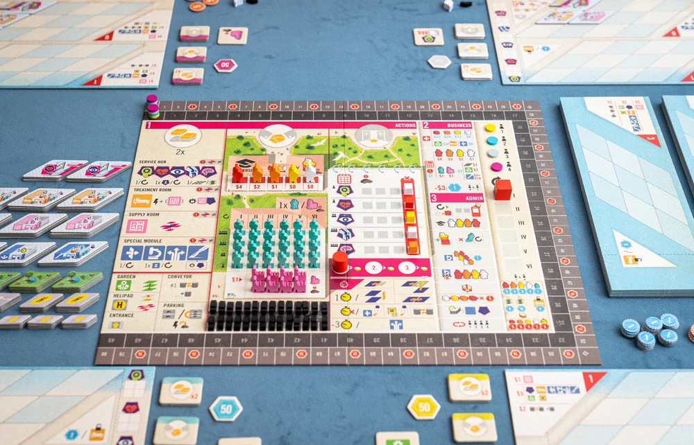 The Deluxe Edition is a complete revamp of the original Clinic, released by Alban Viard (the designer) in France. The overhaul includes custom-shaped wooden meeples for each of the types of workers (Janitor, Doctor, Nurse, Cars, etc.) instead of cubes. The Deluxe edition also includes the following mini-expansions: