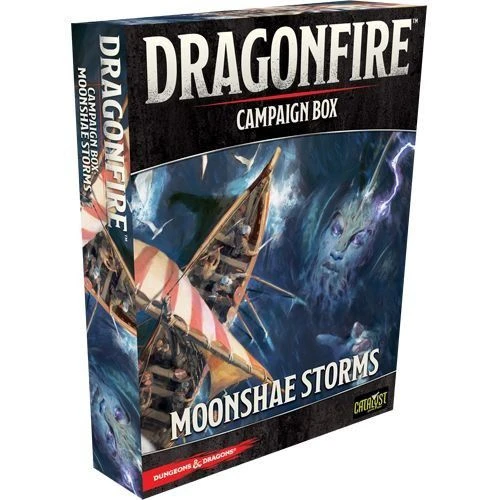 Moonshae Storms is the first Dragonfire Campaign Box. Face encounters from the all-new Mountain environment, and get fully equipped with new Market cards and Magic Items! Also included are eight new Character screens, introducing the Barbarian Character Class, as well as alternative human races: the Folk and Northlanders!