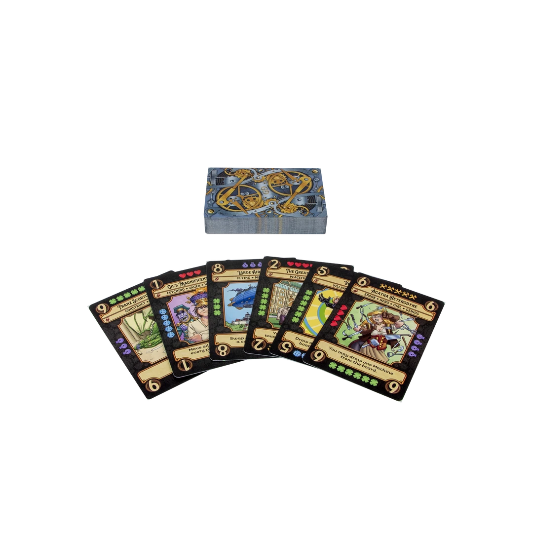 Girl Genius: The Works is a non-collectible card game that consists of several standalone decks of cards. You can play the game with any one of those decks, while also being able to combine some or all of those decks into a single deck for a longer game or a game with more players. Each deck contains many unique cards, but the gameplay is the same in all cases.