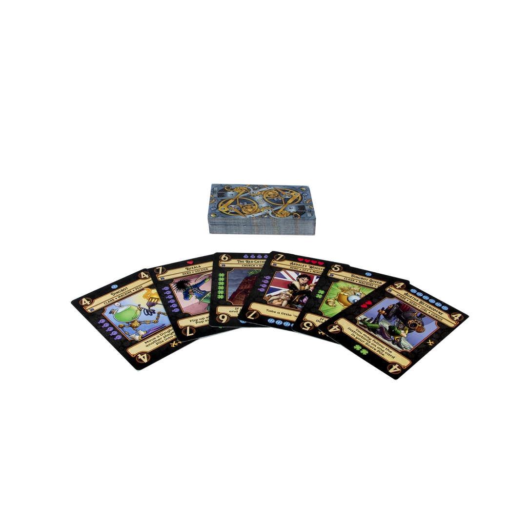 Girl Genius: The Works is a non-collectible card game that consists of several standalone decks of cards. You can play the game with any one of those decks, while also being able to combine some or all of those decks into a single deck for a longer game or a game with more players. Each deck contains many unique cards, but the gameplay is the same in all cases.