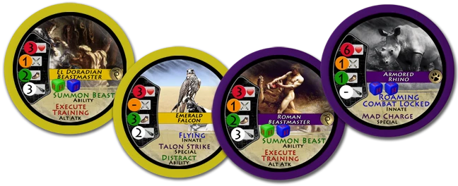 Beast & Master: These 10 chips include an all new Gladiator and Beast for each of the 5 Cities that Hoplomachus has to offer. These will be the start of what will be the ‘customizable’ portion of the game. Playing with the Beasts and Beastmasters option will be determined before each battle begins!