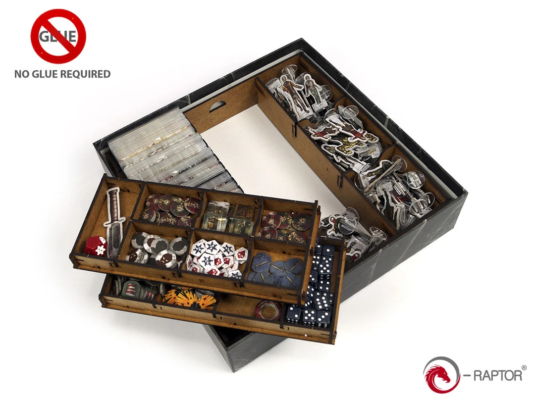 You can hold all your survivors, zombies, tokens, cards, dice etc. in one place without being afraid of losing control of the setting. They can be easily accessed and do not take as much space as during the game without an insert. Also, when the box is closed, the components are still kept in order, ready for setting another game quicker than ever before.