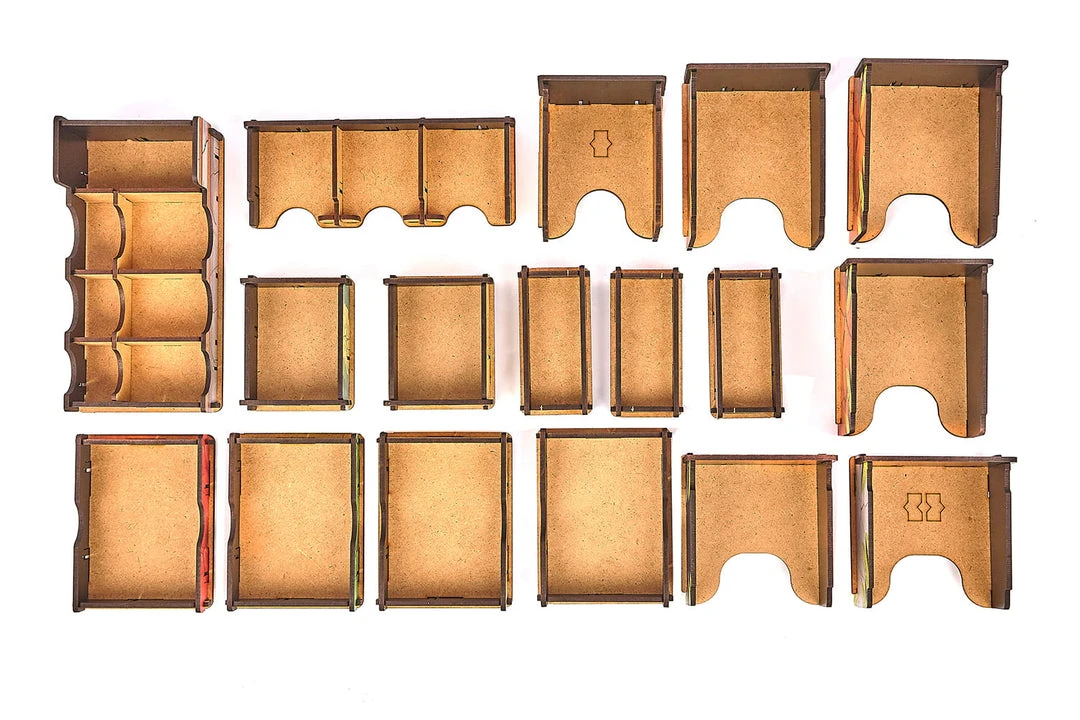 The insert is durable and made of high-quality HDF. To assemble it, there is no glue required. It allows you to hold all components inside the box. You can see the suggested components setup in the pictures. This offer concerns only insert. The game is not included.