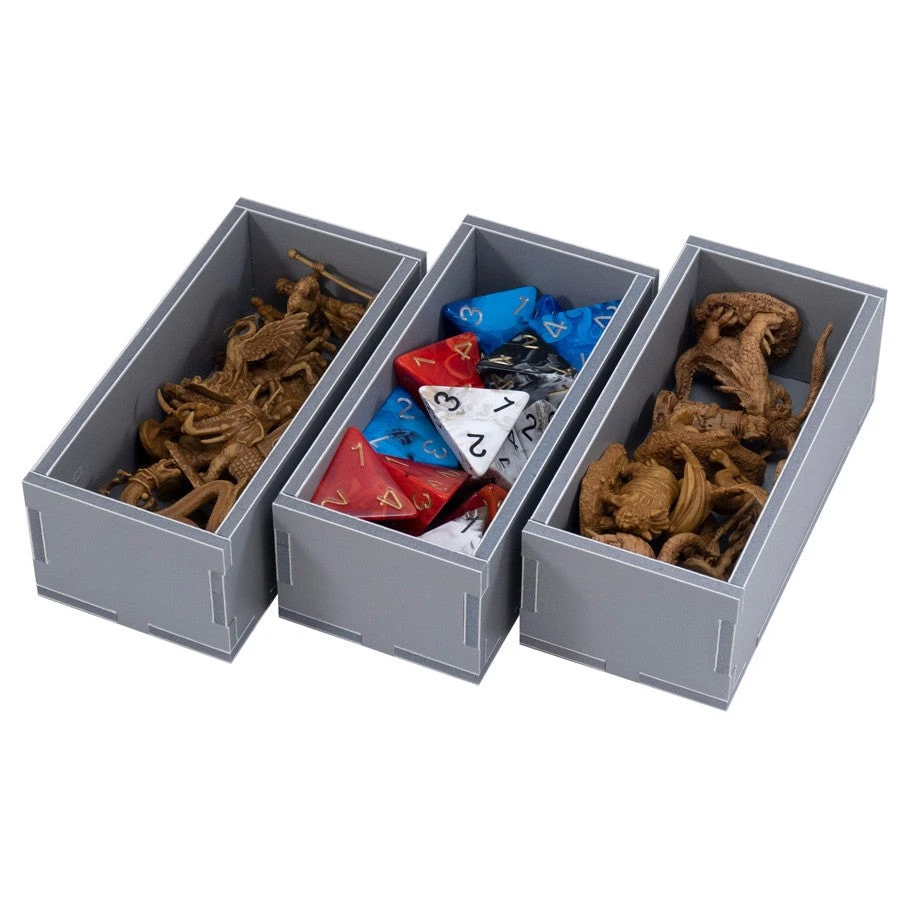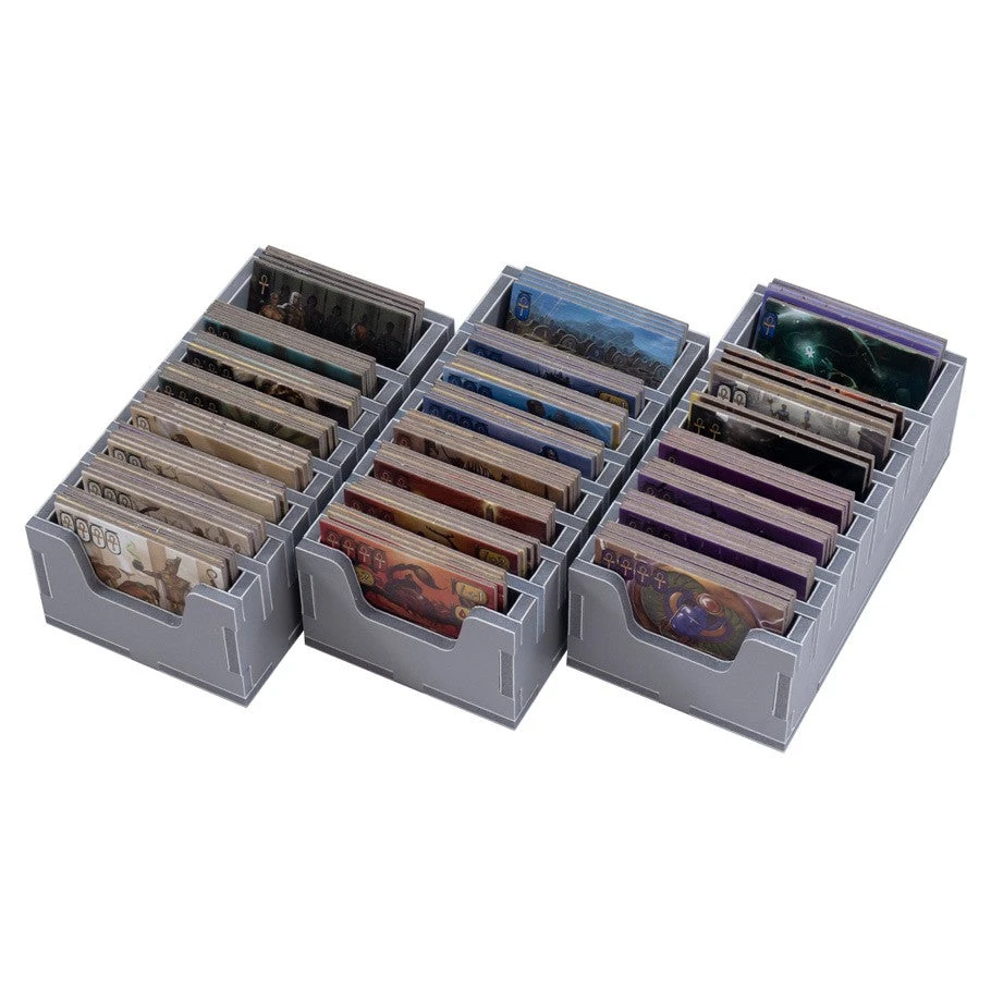 Insert compatible with Kemet®, and has space for the Ta-Seti®, Seth®, C3K Crossover®, and promo power tile expansions. The design provides both efficient storage and improved game play. Many of the trays can be utilized during the game, and they greatly aid set-up and clear-away times. The boards and rule books act as a lid on top of the trays. .