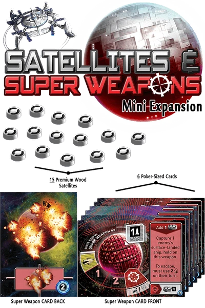 This mini-expansion introduces a press-your-luck element to the game, as well as super weapons with uniquely powerful abilities. These weapons can be destroyed for Victory Points and Energy.