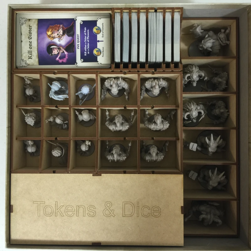 Best of all, everything has a place. Â We have created a stacked token box that provides a great container to place on the table for setup and for use during play.