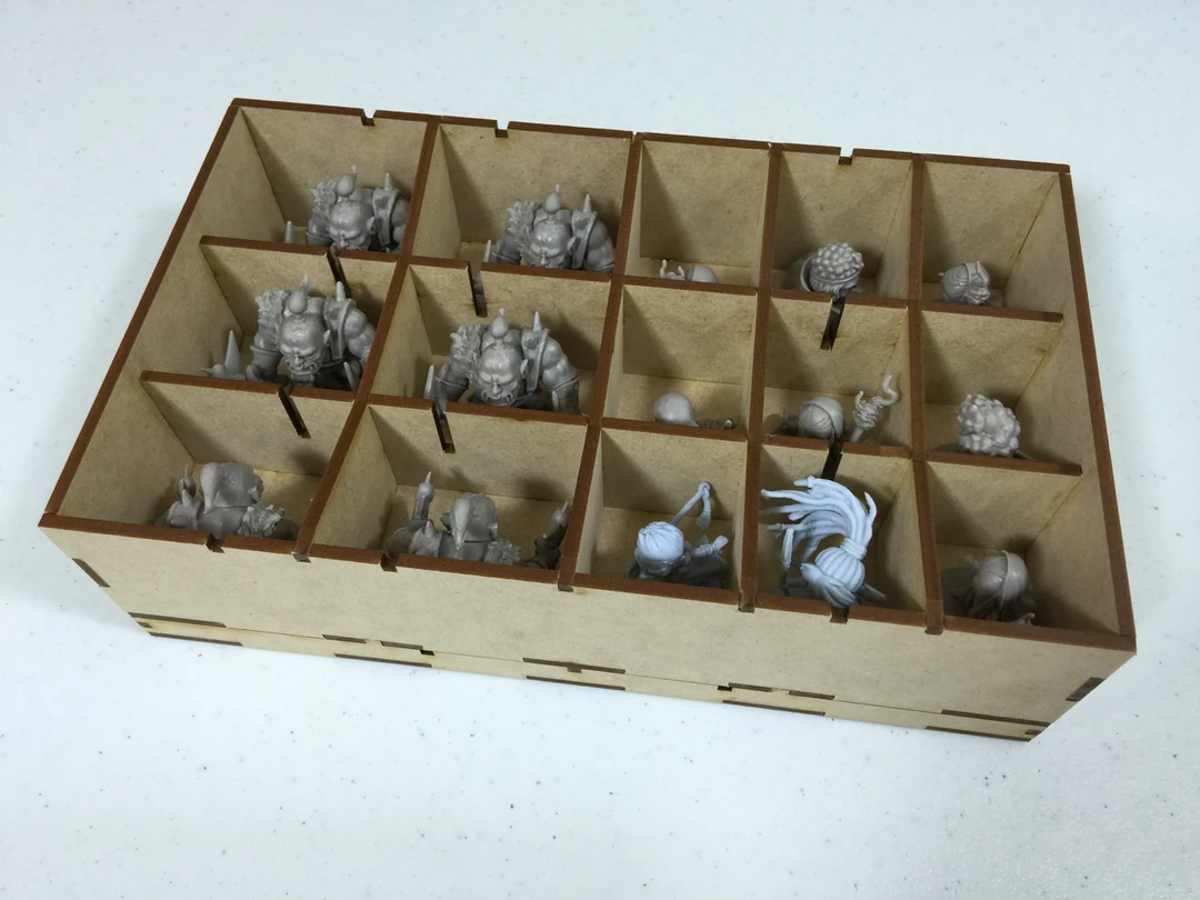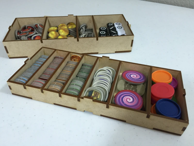 - This insert provides seven (7) removable trays. There is clearance at the top for your boards and rulebooks.