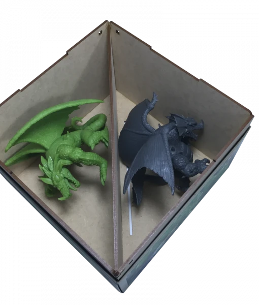 Our storage solution for Arcadia Quest: Inferno dragon boxes will store two dragons. If you own three or more dragons, you should consider acquiring two of these solutions. Dragon tokens have dedicated storage in our AQIHELL-001 insert and cards from the dragon expansions can be stored in the AQIBASE-001, AQIPETS-001, and AQIHELL-001 inserts.