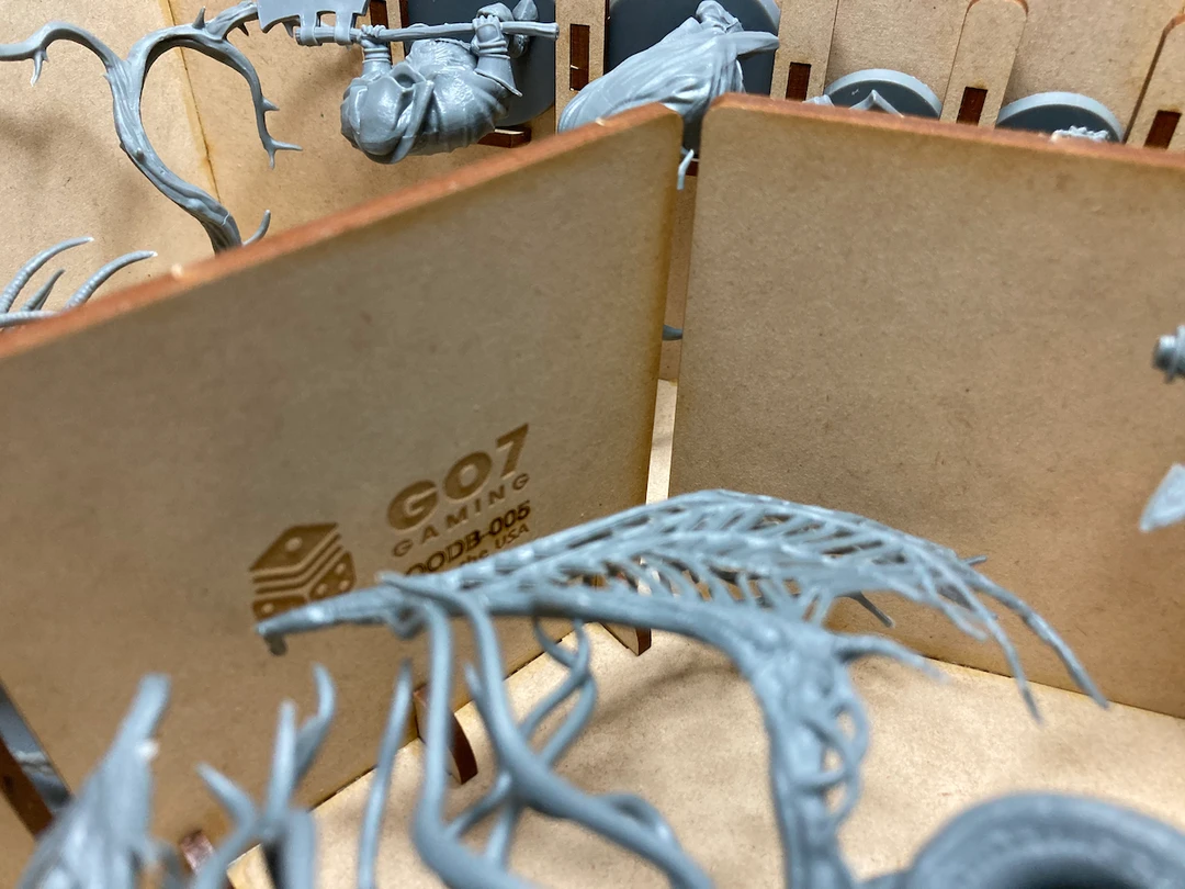 - BLOODB-006 – Provides storage for large minis from Yahar’Gul and Byrgenwerth. Also provides space for 13 small minis. (Mergo’s, Yahar’Gul, or Byrgenwerth expansion box)