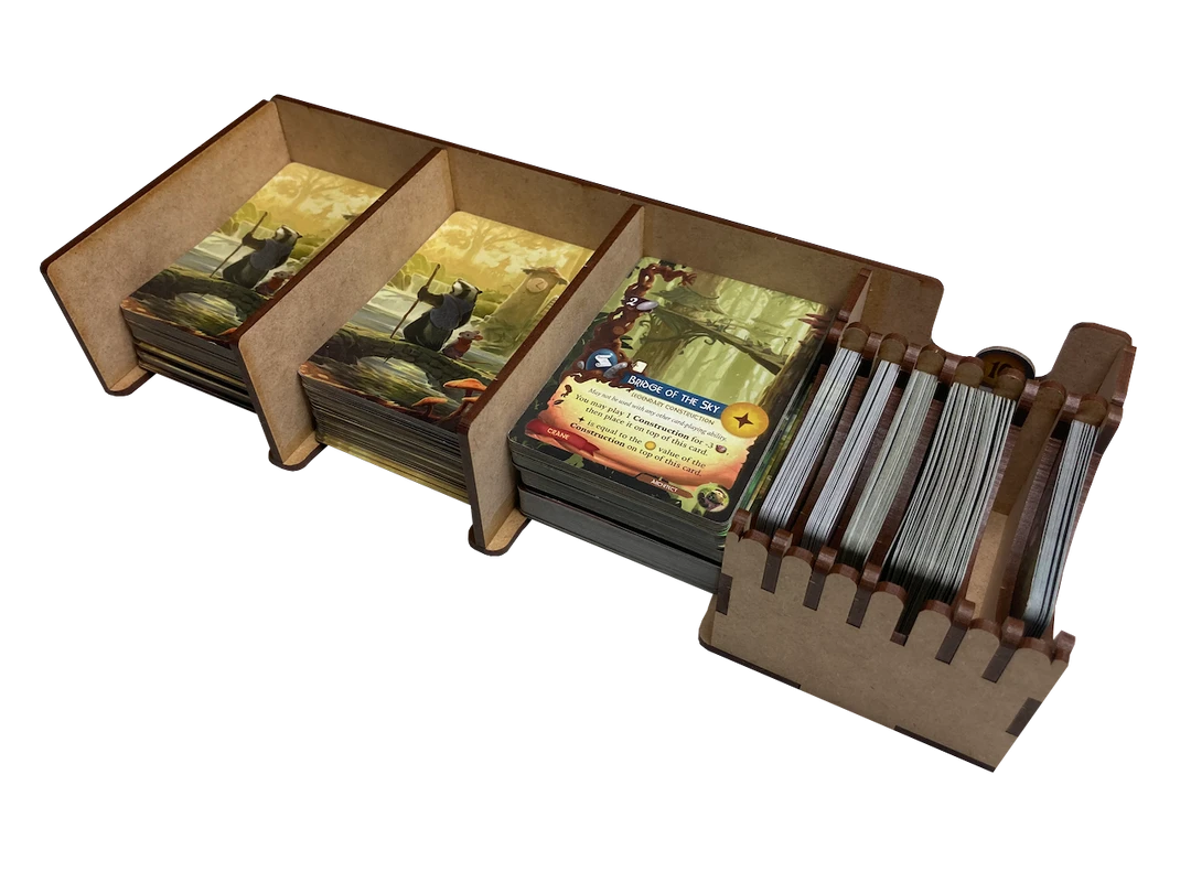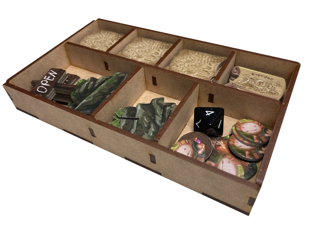 Our upgrade kit for the EVER-001 organizer provides additional support for the expansions Spirecrest and Bellfaire. With this upgrade kit, the base game box is totally filled with trays, so you will need to use your Spirecrest or Bellfaire box to store the game board and game manuals.
