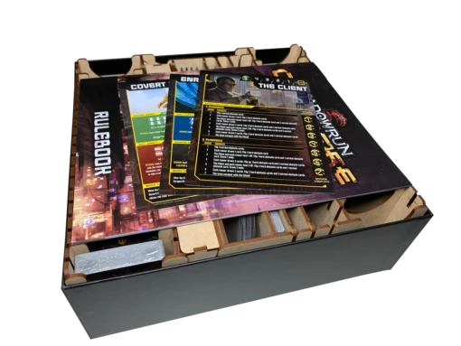 The Shadowrun images depict the Prime Runner core set (no expansions released yet). This solution was designed for the new Crossfire content and has not been tested in/with the older Shadowrun Crossfire releases.