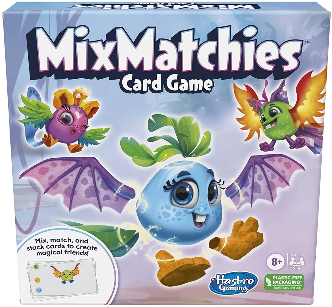 In the MixMatchies Card Game, players compete with their friends to be the best MixMatchies creator. Follow the creator cards to see what kinds and colors of body cards the Matchies need. But remember — a Matchie only becomes complete when it matches a creator card and has ears, wings, feet, and a tail — so adorable! The first player to complete 3 Matchies wins. Kids ages 8 and up can enjoy creating Matchies with friends. It’s a whimsical and fun family game for 2 to 6 players. Hasbro Gaming and all related trademarks and logos are trademarks of Hasbro, Inc.