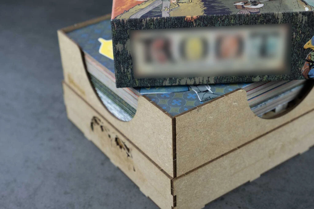 Designed as an accessory for the organizers of Root and its expansions, the lifted base will allow to put both organizers in it, guaranteeing a flush closure with the original game’s lid once all games’ components are put into the box.