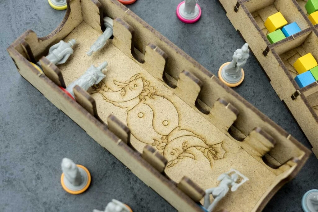 Organizer compatible with Tang Garden (base game or with expansion Ghost Stories; Golden Age). This organizer can fit alternatively just the base game or base game + expansion/s. Slots are designed both for retail or kickstarter exclusive components, , including miniexpansions The Wayfarer and The Herbalist