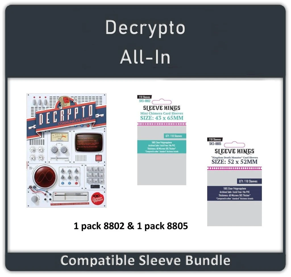 These are all the sleeves you need to sleeve everything for the game Decrypto (All In Bundle). This bundle includes: