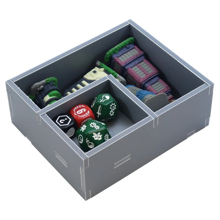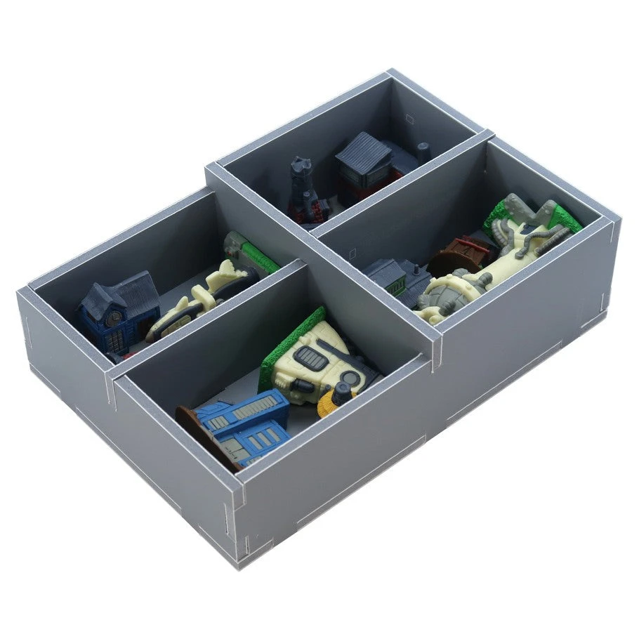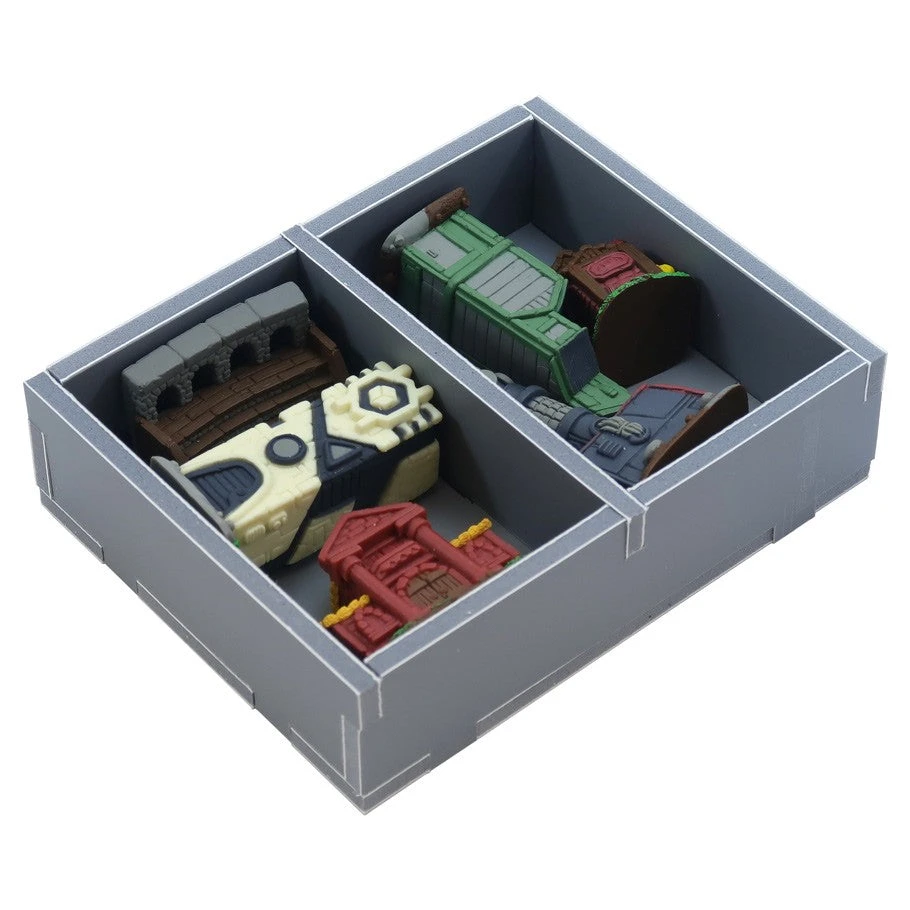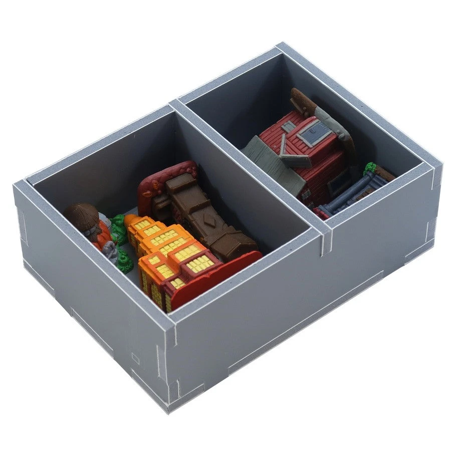 Insert compatible with Tapestry®, including the Plans & Ploys® and Arts & Architecture® expansions. The design provides both efficient storage and improved game play. Many of the trays can be utilized during the game, and they greatly aid set-up and clear-away times. The boards and rule books act as a lid on top of the trays.