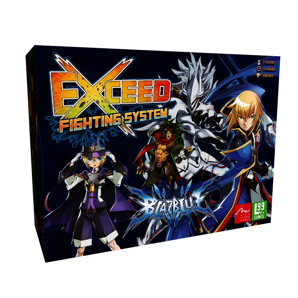 Exceed Fighting System unleashes four brand new fighters from the acclaimed fighting game BlazBlue! Bring the fast-paced action of head-to-head arcade fighting games to your tabletop! Choose your fighter from an ever-growing roster of diverse characters, each with their own deck of special moves and supers. Exceed to reveal your true power and unleash havoc on your opponents!