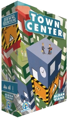In Town Center, players build a city – in particular, the town center. They add cubes on their personal board and try to arrange them as best as possible in order to score the most victory points. Each cube represents a different type of module. Flats, shops, offices, generators, lifts, car parks, town hall can be built and stacked during the course of the game. Each module generates influence on adjacent land and on cubes directly below or above.