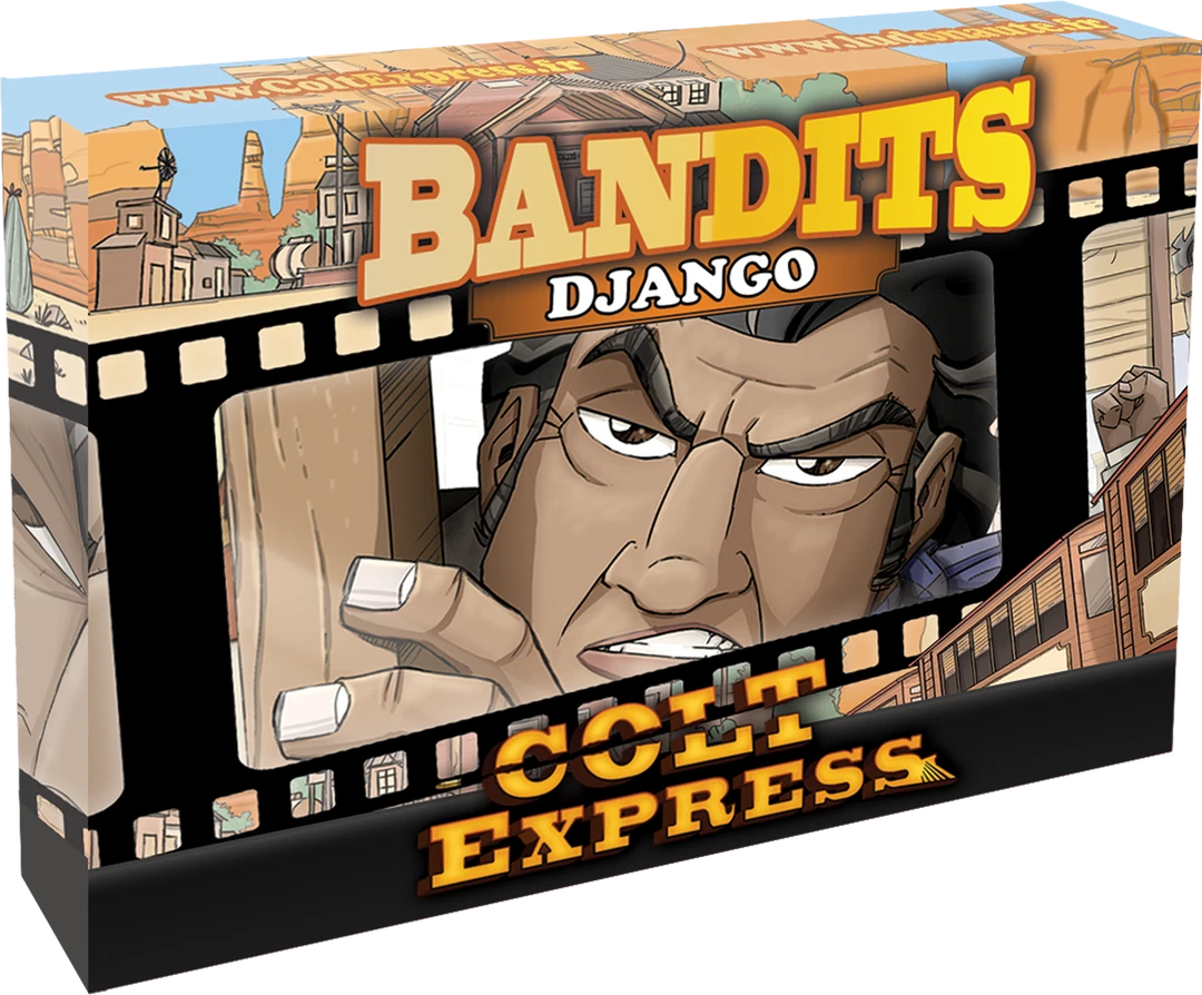 At the beginning of each round, Django drops dynamite where he is located. Django has an explosion action that triggers all the dynamite in the train. Every bandit who is inside or on the roof of an exploding wagon is ejected. They give Django their Wanted token and must use their next action to board the train once again. Django wins the game if he succeeds in getting all the bandits’ Wanted tokens.