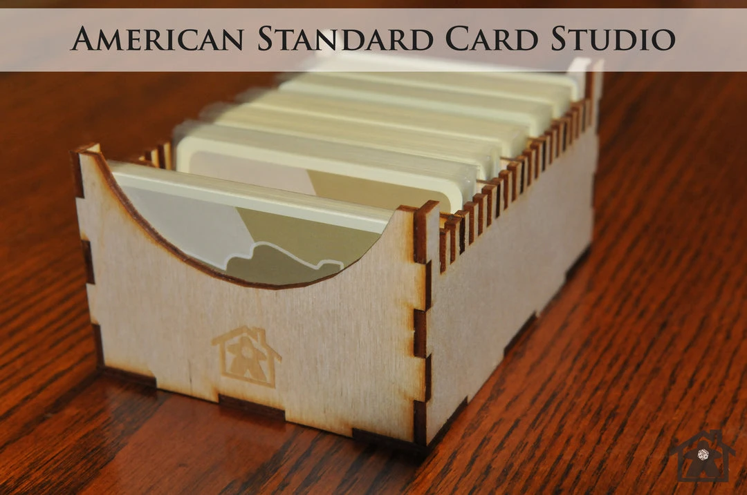 • Sleeved and Unsleeved Standard American Standard Card Games ​Designed to fit inside the game box, the American Standard Card Studio is a handy little companion to keep all your cards in order. Â