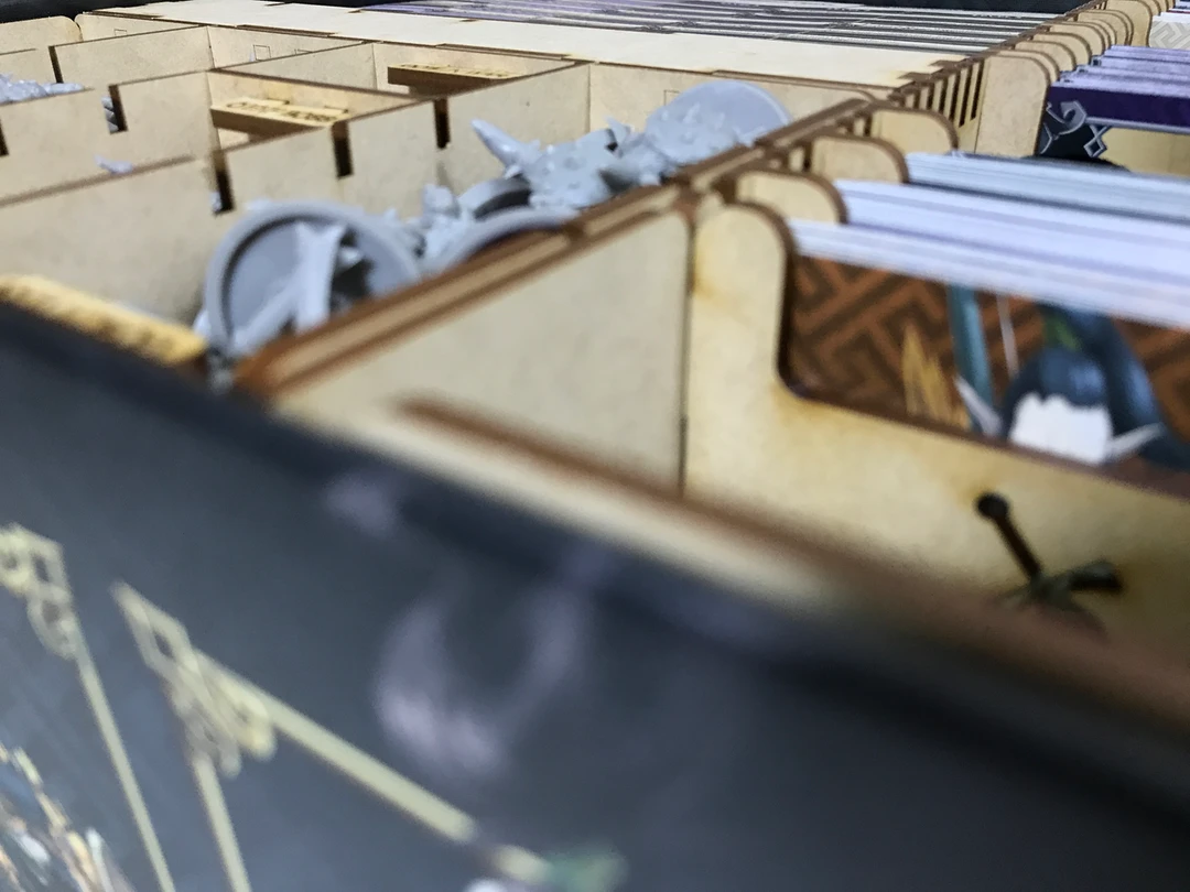 - The insert will fit inside the game box and box will sit flush (only for first print run and Deluxe edition). For Xtreme edition and the later print run, the box lid will be lifted by 5 millimeters. The game can also be stored vertically.
