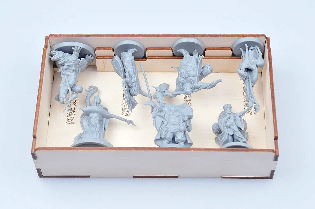 - Any additional components from Kickstarter and the expansions are stored in the Daimyo box.