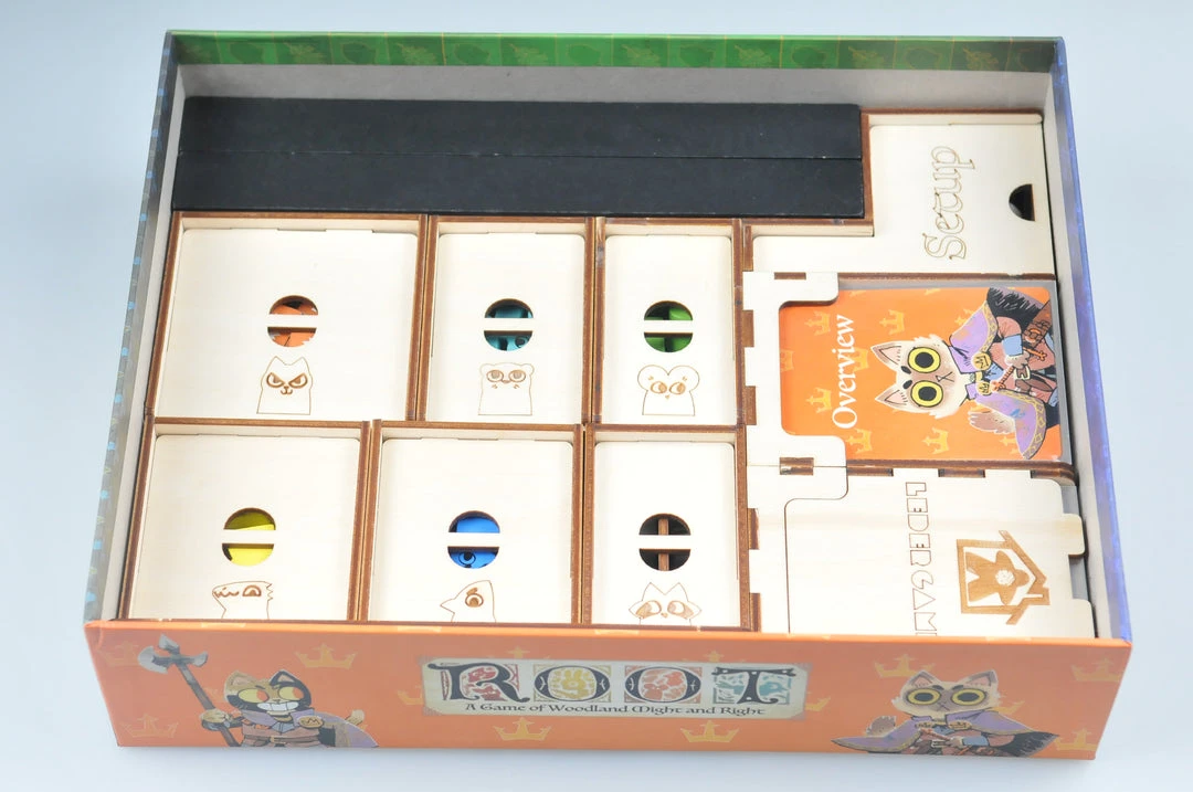 - Setup tray that also holds sleeved cards (we used Fantasy Flight sleeves in the design).