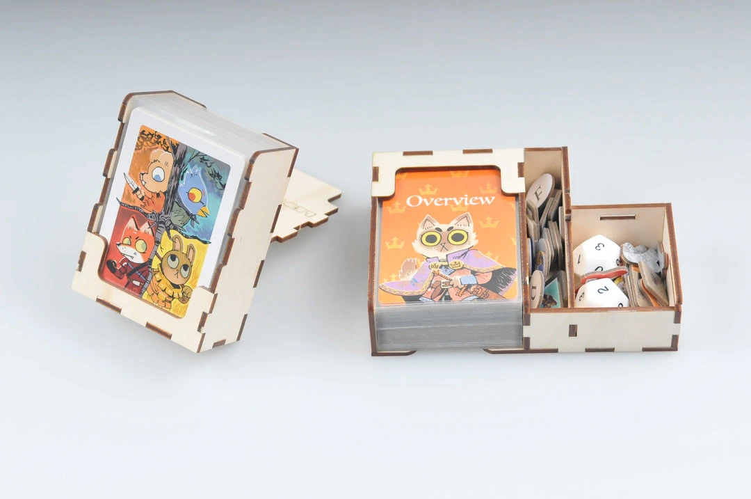 - Card tray that holds sleeved cards and comes with a kickstand for the card tray.