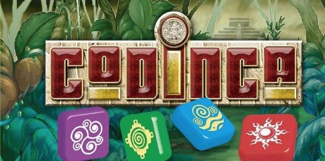 In Codinca, each player has control of a set of four matching symbol tiles: Air, Water, Earth or Fire. Players take turns attempting to move their tiles into a series of four specific key patterns indicated on the key discs drawn at the beginning of the game; those patterns are a block of four, a line of four, four corners (can be four corners of any nine tiles as well as outside corners) and a diagonal line of four.