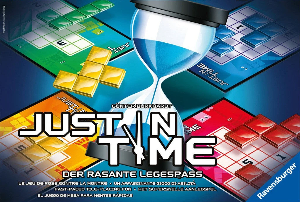In Just in Time, each player tries to place his pieces on his game board faster than any other player, while leaving gaps in the right places on those boards. Ah, that’s the art of the game because there are many points waiting to be scored if the highest possible numbers survive in the gaps created with your playing pieces.