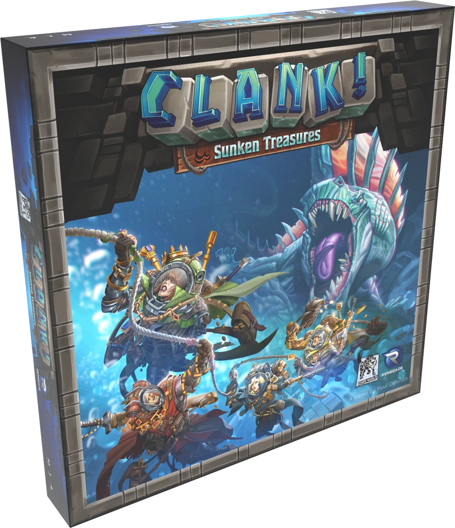 In Clank! Sunken Treasures, an expansion for Clank! A Deck-Building Adventure, players explore two partially flooded maps with new dungeon deck cards, a new persistent monster to defeat, new environmental challenges, and more as they venture in the watery depths!