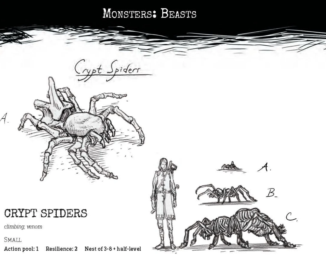 Simple shambling dead and clever revenants are the most common abominations of the Well, but the magic that animates them creates whatever twisted reflections of life it can manage: bats made from skulls with wings of hands, snakes assembled from unused spines using animal skulls from teeth, spiders of all sizes built out of bones, and the tangles of shapeless flesh and bone that resemble nothing at all.