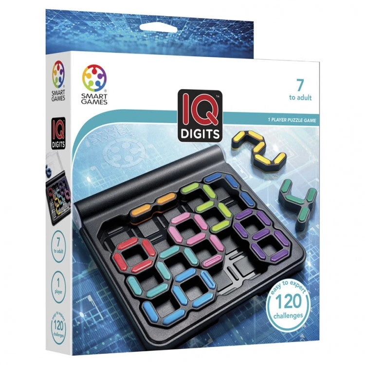 Crunch the numbers and make them fit!If you’re counting on a real challenge, IQ digits has you covered! Can you place all the puzzle pieces on the gameboard and make sure the numbers add up? IQ Digits is a unique travel game featuring 120 challenges, from easy to expert.