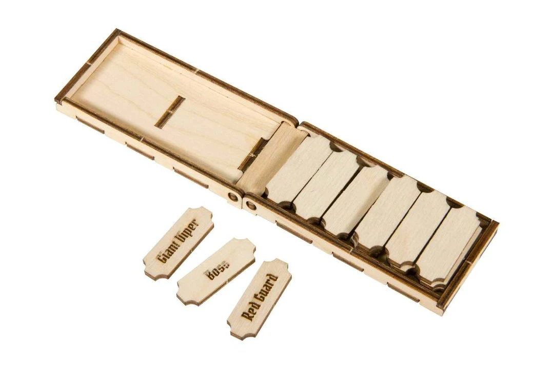 Are you lost figuring out whose turn is next? Can’t read the names on the initiative tokens? Then grab our Jaws of the Lion Initiative Tracker, designed to help keep track of initiative order during gameplay! Included are 18 wood-engraved Initiative Tokens that replace the cardboard tokens included in the game. Our Initiative Tracker can be used for the First Edition or the Second Edition of Jaws of the Lion, and can be painted and stained for a customized look.
