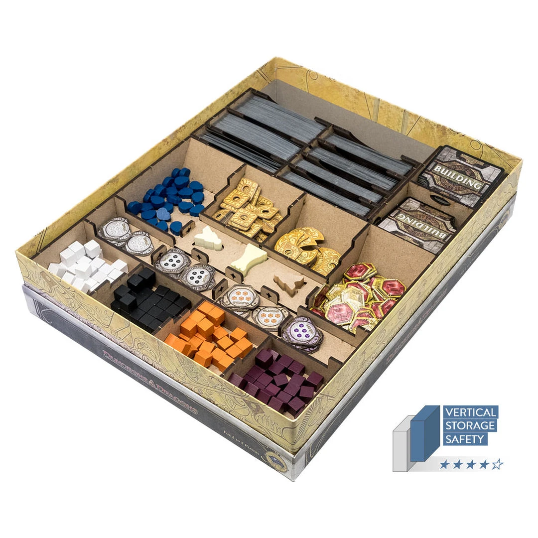 Organizer compatible with Lords of Waterdeep (base game or with Scoundrels of Skullport exp). This organizer is suitable alternatively for just the base game or base game + expansion.