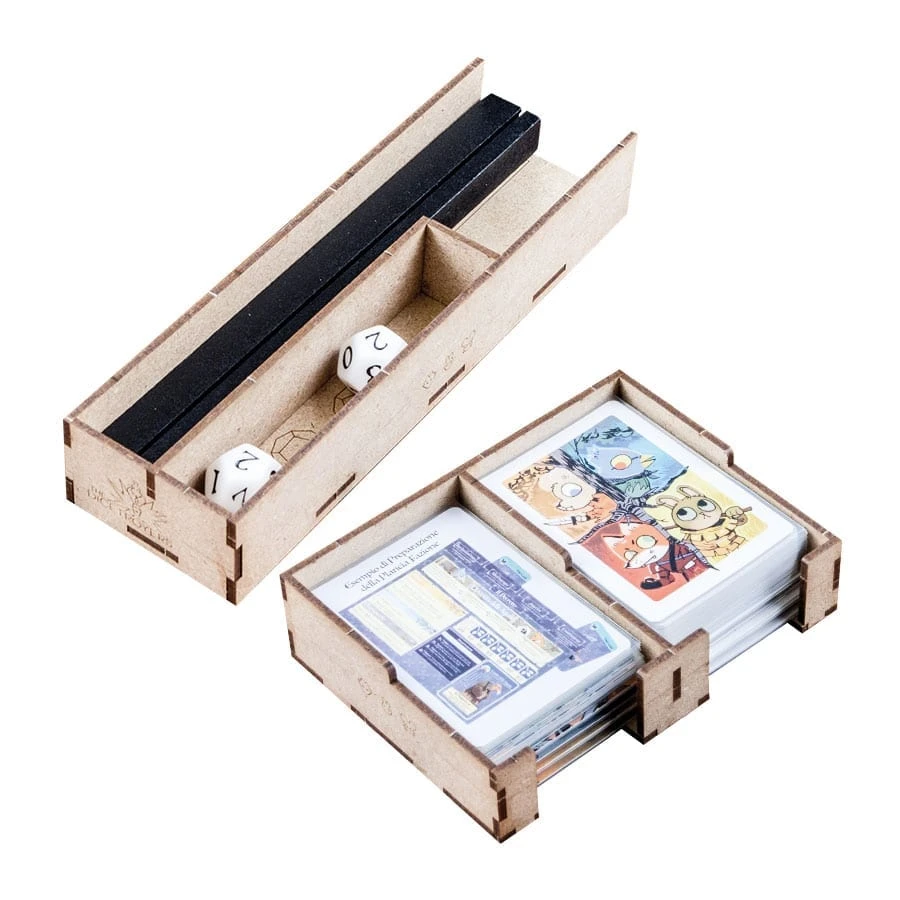 Designed to fit into the game box. Designed for both sleeved and unsleeved cards.