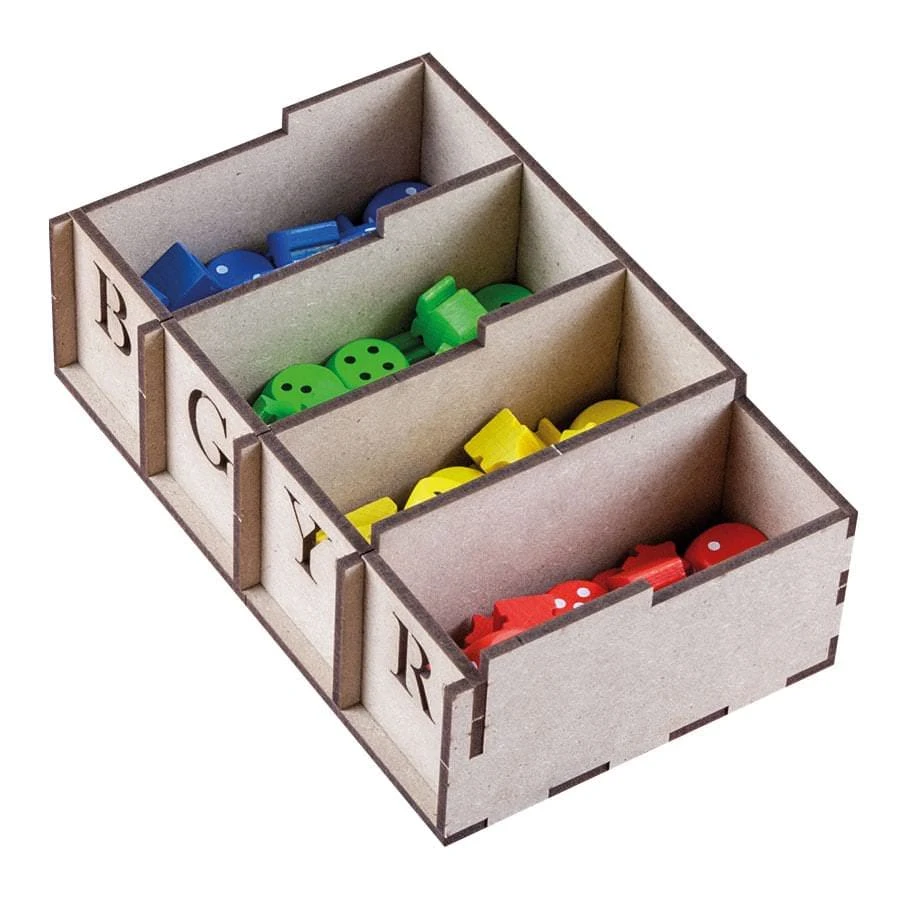 • 1x player box, with 4 slots for each individual color, with 4 single shutter openings for easy access to the parts;