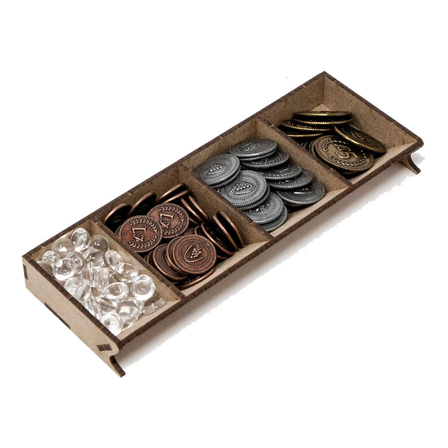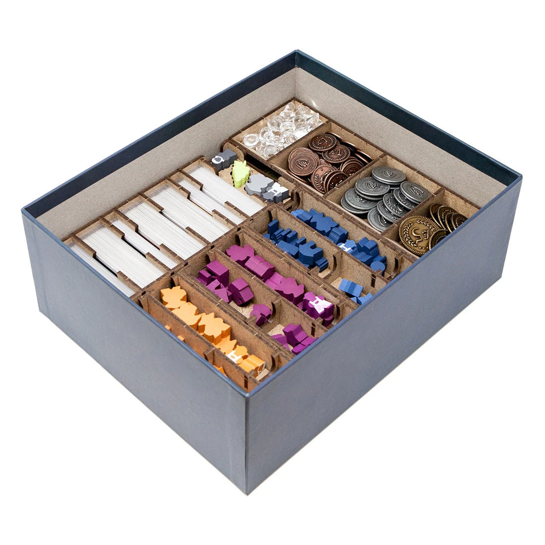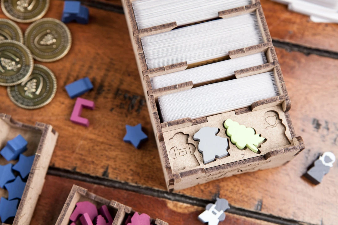 • 1x small size card holder, with 7 slots and dedicated space for initial setup meeples (neutral workers and grape);