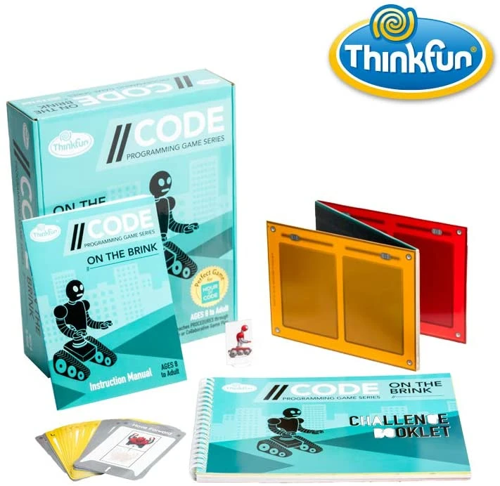 On the Brink is the first in a series of games designed to build the mental skills needed to fully grasp the concept of coding. All of the games are screen-free for a unique, unplugged play experience. Each of the 40 On the Brink challenges contains a map of colored squares. Each color has pre-programed moves for your Robot to perform. Use your problem-solving skills to determine the moves that will successfully get your Robot from start to finish. On the Brink is a fun and challenging step up from more simple sequencing games like Robot Turtles.