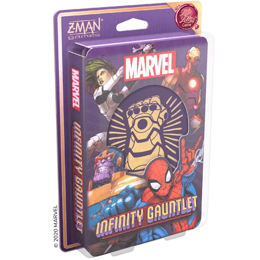 The Mad Titan Thanos seeks the Infinity Stones to bend the universe to his indomitable will, but courageous heroes are assembling to stand in his path to ultimate power. Based on the beloved card game and set in the Marvel Universe, Infinity Gauntlet: A Love Letter Game features the elegant mechanics of the original, re-imagined in a one-vs-many twist for thrilling team play. While one player takes on the role of Thanos on a crusade to change the universe as we know it, 1-5 other players must deploy iconic heroes to defeat him before he can achieve his aims.