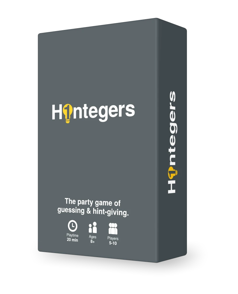 Hintegers is the social game of figuring out what number someone is thinking of. Each turn, the Hint Giver provides a one word hint related to their category, and secretly selects a number 1 through 10. The other players then play a card trying to match the number. Stumped? Use a lifeline! As the Hint Giver, be sure not to give easy hints as only the players that match get one step closer to winning! The object of the game it get down to having only 3 numbers left in your hand, and you get rid of numbers by successfully guessing (or giving a successful hint!) Laugh and Learn in this thought provoking party game, it’s as easy as picking a number 1 through 10.